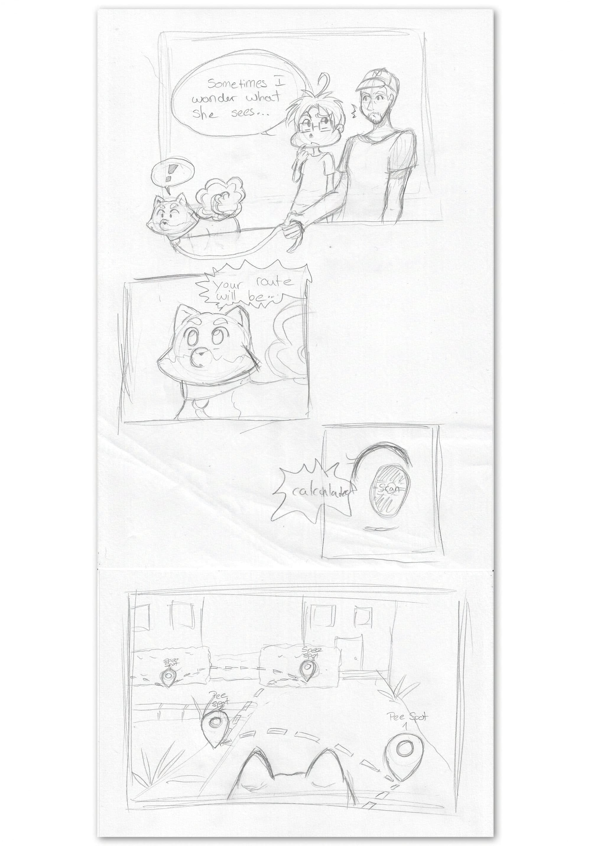 Die Skizzen für den Comic entstand mit Bleistift auf Papier. Mir gefiel das Gefühl beim Zeichnen vom Papier und so war es bei diesem Comic meine Routine. Danach scannte ich die Skizze ein und finalisierte auf dem iPad mit Procreate den Comic.