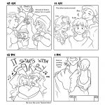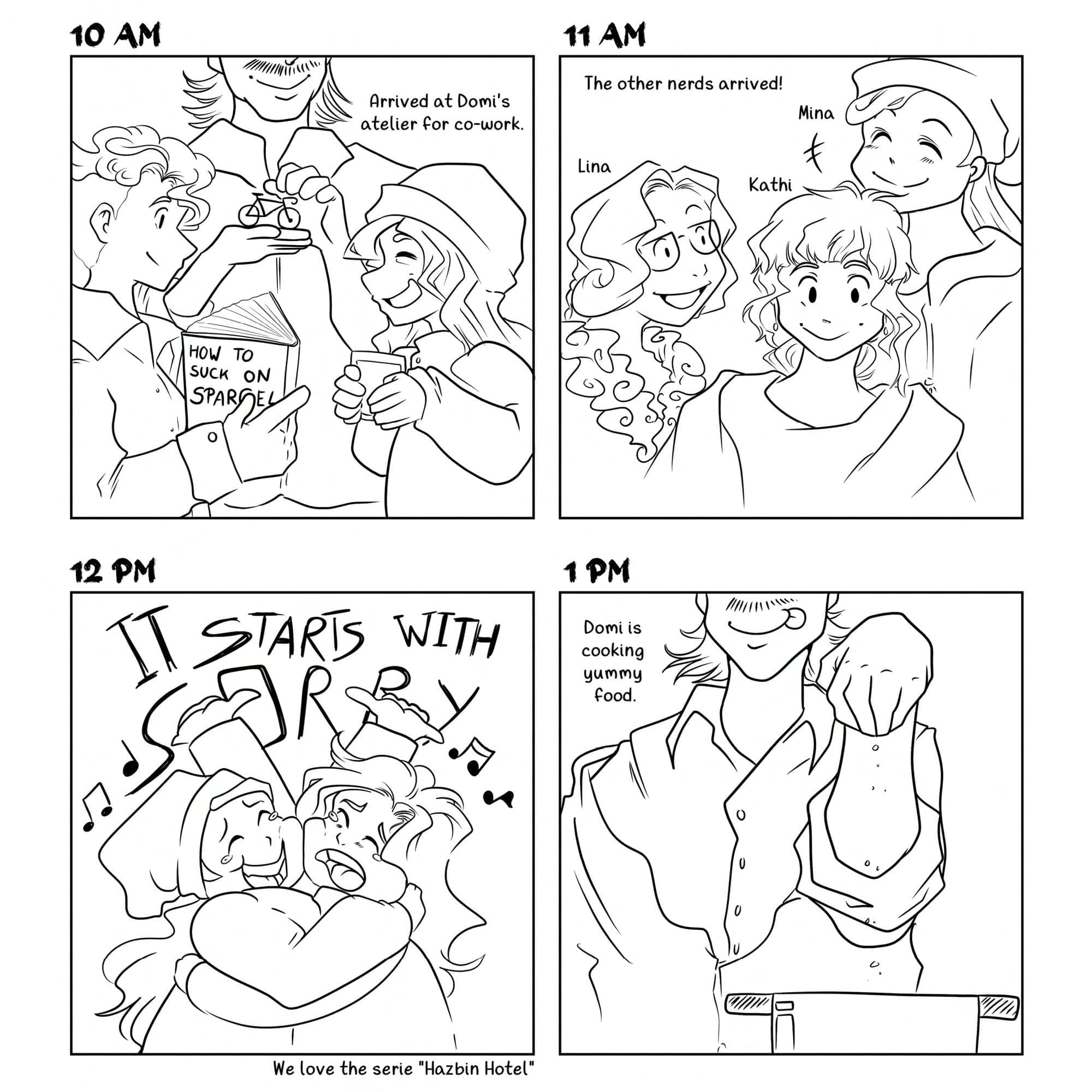 Ein Hourly-Comic 2024 illustriert. Ziel ist es, an einem Tag zu jeder Stunde zu illustrieren, was passiert ist.